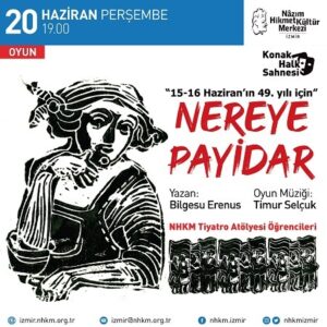 NHKM İzmir, yeni binasının 1. yılını ve 15-16 Haziran’ın 49. yıldönümünü İzmirli sanatçı dostları, sivil toplum temsilcileri ve salonu dolduran izleyicilerle birlikte coşkulu bir etkinlikle kutladı. Etkinlikte ayrıca NHKM İzmir Tiyatro Atölyesi öğrencileri, dönem sonu gösterisi olarak Bilgesu Erenus’un “Nereye Payidar” adlı oyununu sahneledi.